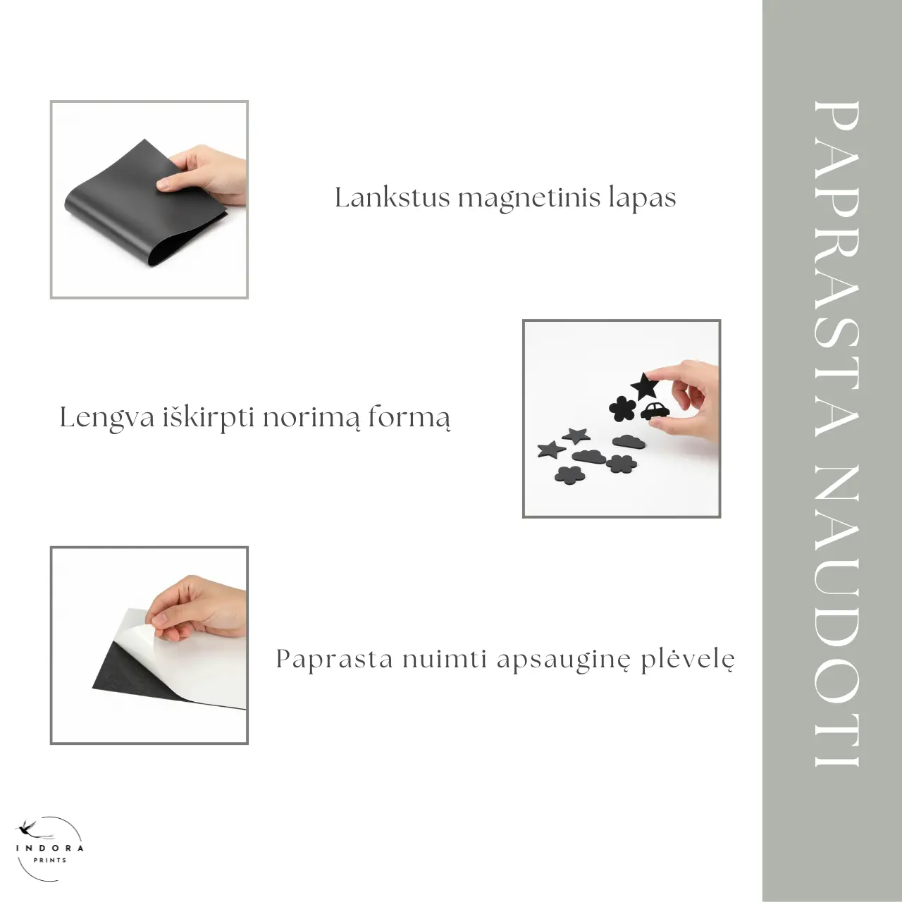 Lankstus lipnus magnetinis lapas A4 formato – puikiai tinka nuotraukoms, lipdukams ar DIY projektams. Pasirinkite pakuotę: 1, 3 arba 5 vnt.