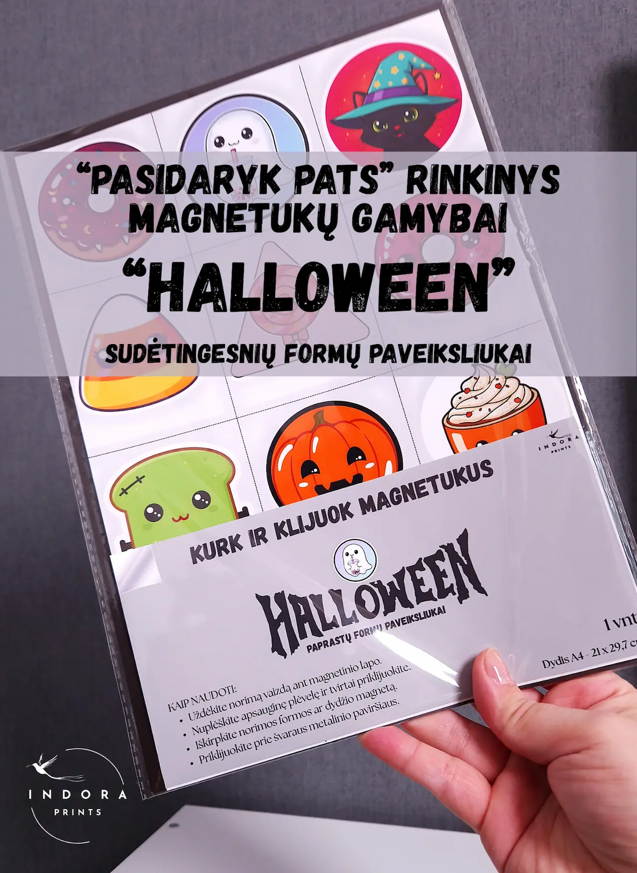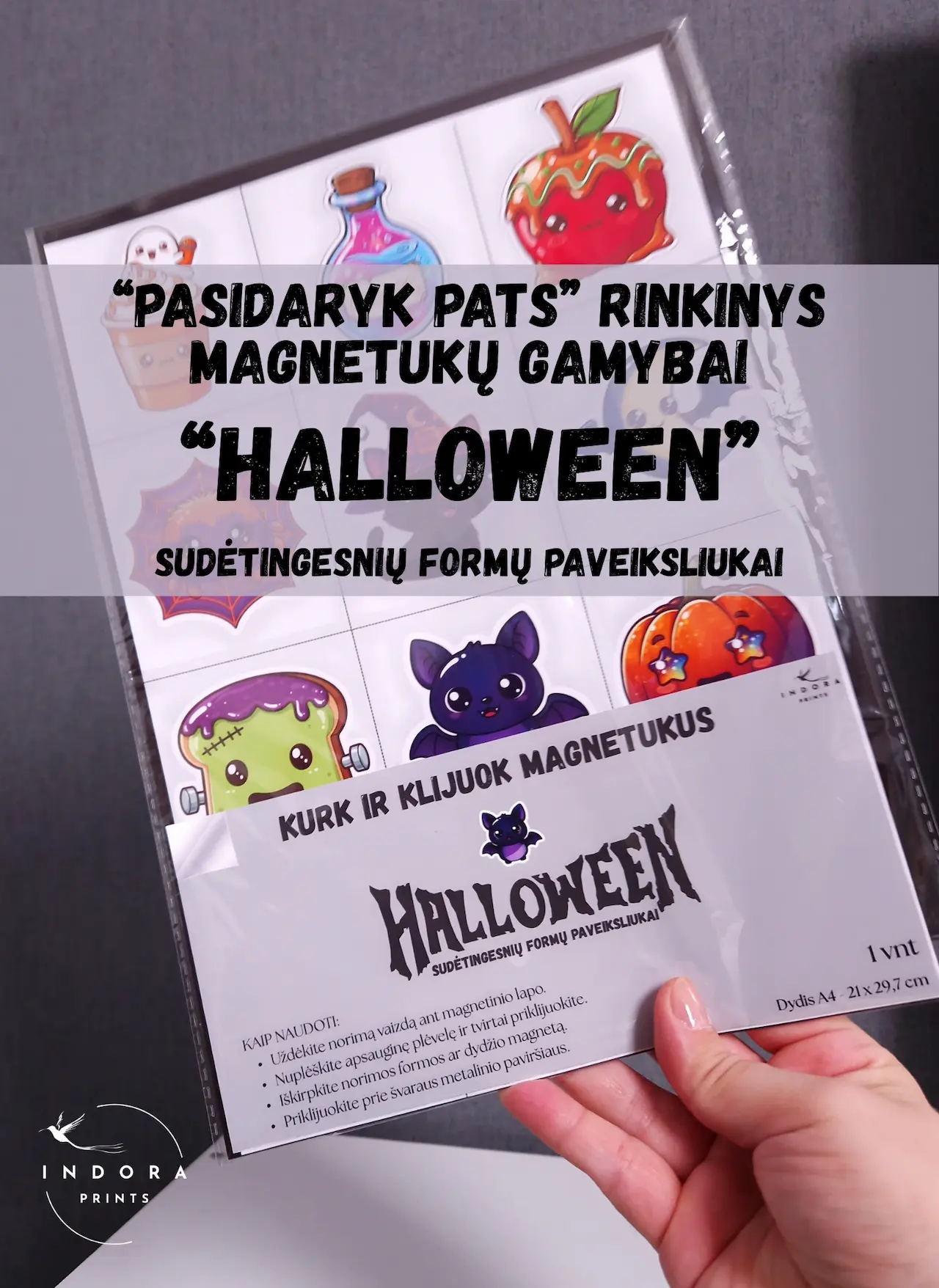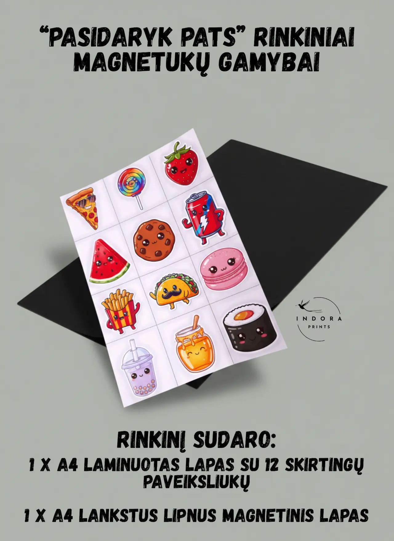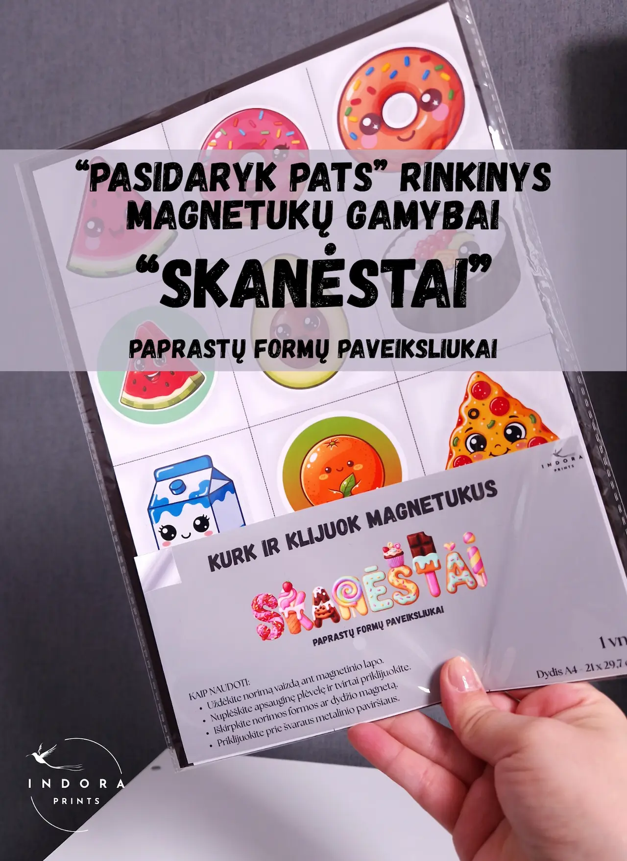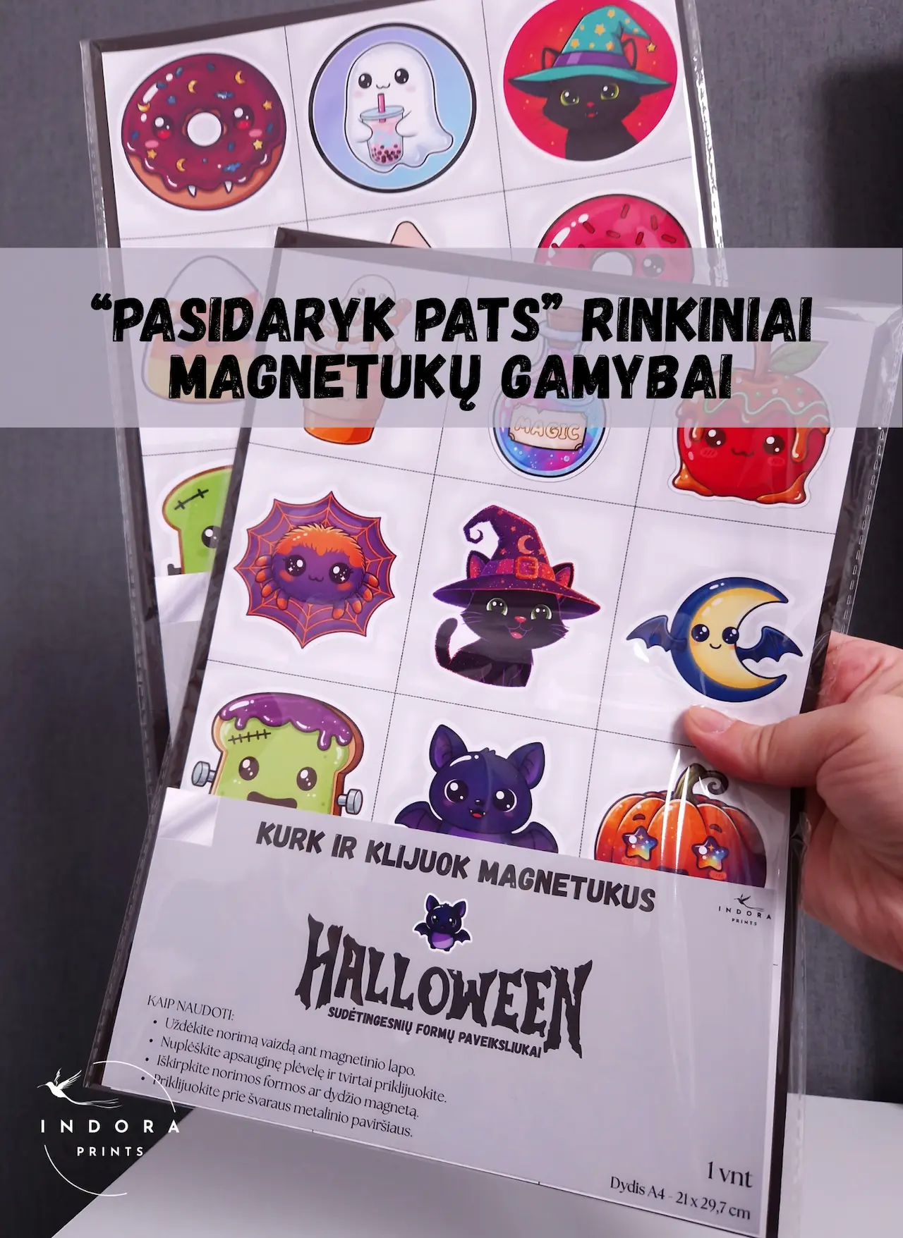 Kurk savo magnetukus pats! 🎨 Rinkinį sudaro laminuotas A4 lapas su žaismingais paveiksliukais ir lankstus lipnus magnetinis lapas. Pasirink temą – Helovynas 🎃 arba Skanėstai 🍩 – ir išsirink tinkamą sudėtingumą: paprastos formos mažiesiems arba sudėtingesnės – vyresniems vaikams. Smagus kūrybinis užsiėmimas šeimai, klasei ar stovyklai! 💛