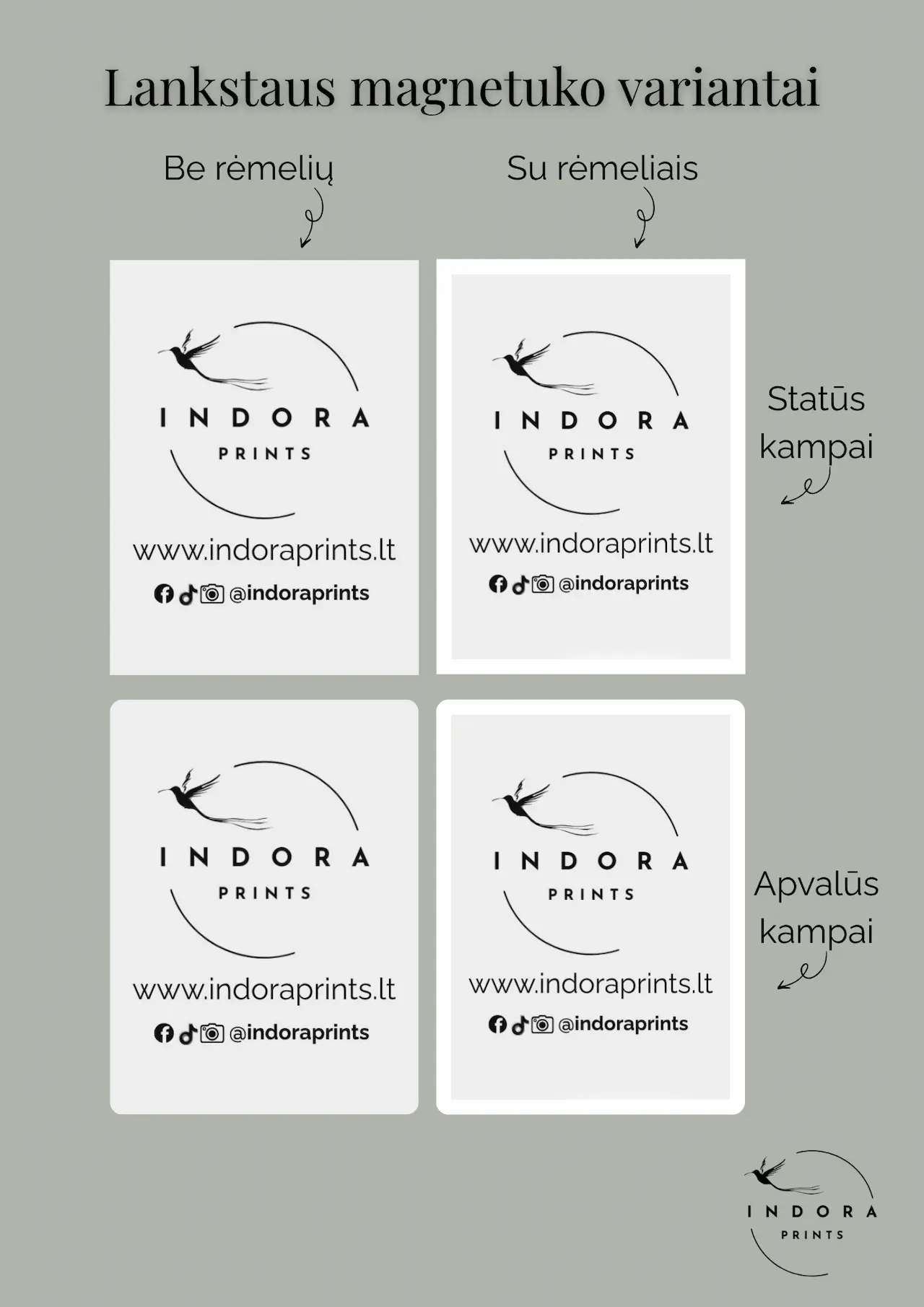 📩 Dėl kainų informacijos: kreipkitės el. paštu info@indoraprints.lt – paruoštas kainoraštis pagal kiekį ir pakavimo tipą.